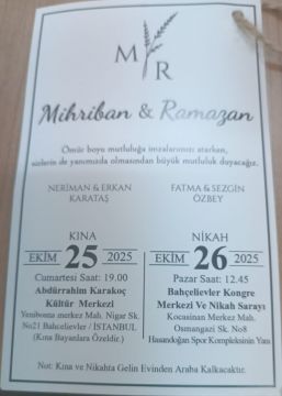 Ramazan ÖZBEY kardeşimizin Nikah...![]() . ⚘️ NİKAH DAVETİ ⚘️ Köyümüzden SEZGİN beyin oğlu RAMAZAN ÖZBEY kardeşimizin Nikah törenleri var. Tarih: 26 Ekim 2025 Pazar Saat : 12:45 Yer : Bahçelievler Kongre Merkezi Adres : Kocasinan Merkez Mah. Osman Gazi Sok.8 (Hasan Doğan Spor Salon yanı) İletişim: Sezgin Özbey 0537 547 85 21 Gençlerimizi tebrik eder, ömür boyu mutlu, sağlıklı, başarılı ve hayırlı günler geçirmelerini dilerim. Erol ATASOY Dernek Başkanı |